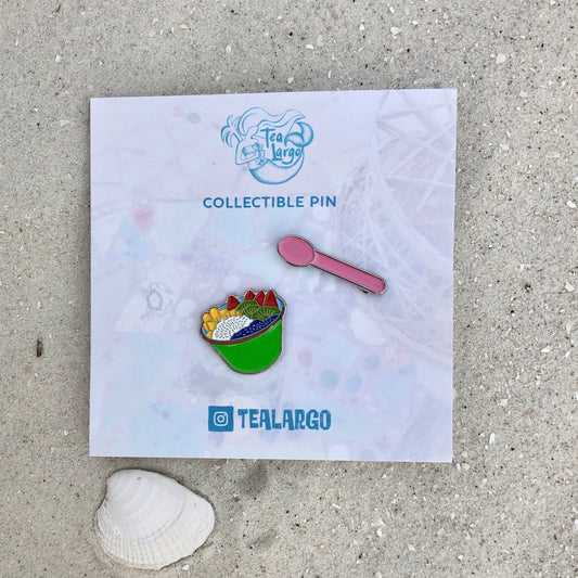 Acai Bowl with Blue Spoon Enamel Pin Set (2 pins)